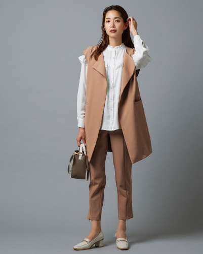 重ねて着るだけで、たちまちスタイリッシュに決まるジレ。トップスに羽織るほか、ワンピースに合わせても素敵ですよ。季節の変わり目では防寒に役立ち、コートのインナーとしても使えます。気に入ったデザインを見つけたら、いち早く押さえておくのがおすすめです。明日からのスタイリングに即活用できます。