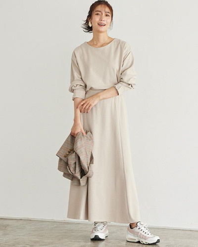 リラクシングなスウェットながら、仕立ての良さで上品に装えるスカートです。ペンシルスカートといっても幅には程よいゆとりがあり、バックにはスリットも入っているので動きを妨げません。