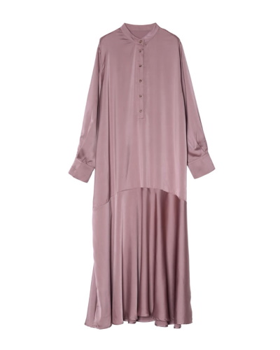 トレンドのサテンをふんだんに使用したワンピースです。ウエストを絞らず低めで切り替えたマーメイドシルエットで、気負いなくトレンドスタイルに挑戦できそうですね。くすみがかったピンクやブルーのほか、定番のブラックやダマスク柄のプリントがそろっています。レイヤードや単品でたくさん使えますよ。