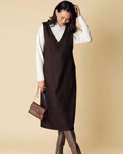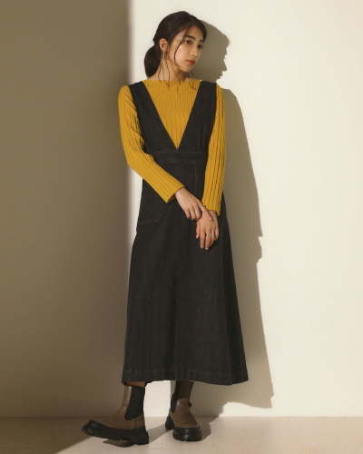 ジャンパースカート×リブニット