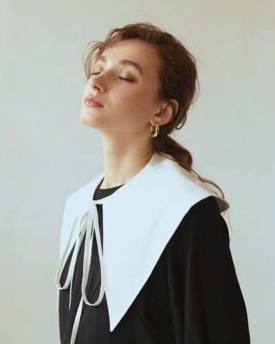 ビッグカラーワンピース×レザー小物