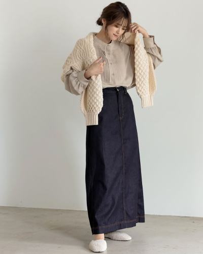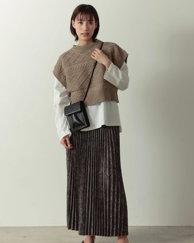 ケーブル編みベスト×プリーツスカート