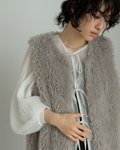 カジュアル派のアウターでは、トレンドのボア素材を使用したブルゾンやジレが人気。