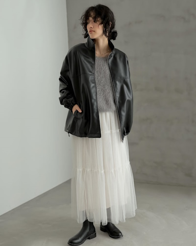 一見すると風通しがよくて寒いのでは?と思いそうですが、ボリューミーなスカートや重ね着用のトップスを着ると空気の層ができるので、アイテム選びと使い方次第で真冬のコーデにもしっかり対応するんです。