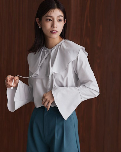 今シーズンはトレンドカラーのニットや旬のディテールを施したブラウスを使い、モードなセンスを漂わせながら新鮮に着るのがおすすめです。