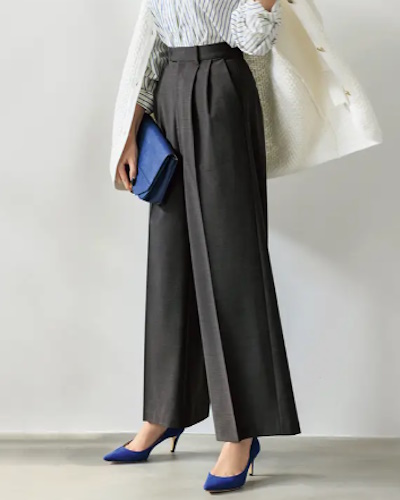 グレーのワイドパンツはコーデの軸として使える要チェックのアイテムです。