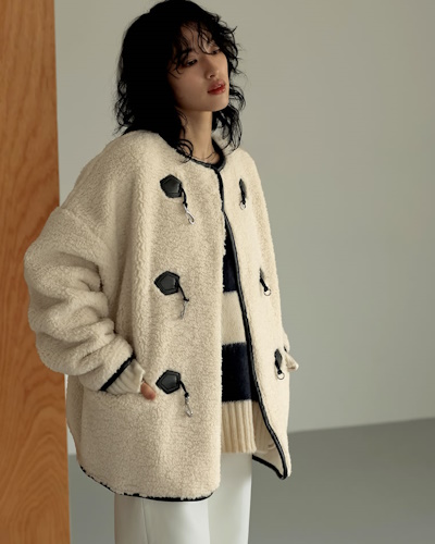 ボアはおもにポリエステルからできているため着心地がとても軽く、トレンドのビッグシルエットでも着ていてストレスにならないことが魅力です。