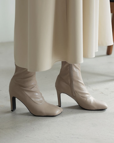 ストレッチ感のある素材を使ったブーツは履きやすく、ボリュームが出やすい秋冬コーデをすっきりと見せる効果も期待できます。