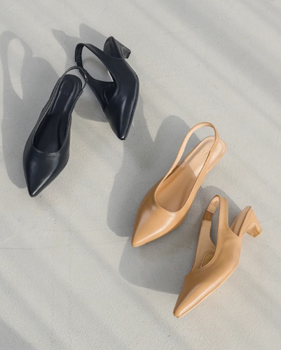 かかとが見えることで通常のパンプスより抜け感があり、洗練された雰囲気に見せてくれるのが魅力です。