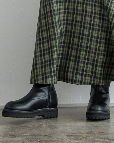 一般的にチェルシーブーツというと、いわゆるサイドゴアブーツと呼ばれるゴムが入ったものが定番ですが、今季はゴムのないスッキリしたデザインも登場し、きれいめのコーディネートにも合わせやすくなっています。