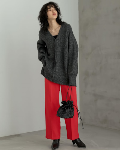 地味になりがちな秋冬コーデも、レッドを足せばたちまち印象的で今年らしい装いに変身。