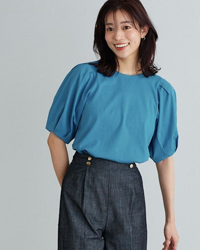 こちらのトップスはほんのり甘いパフスリーブがポイント。