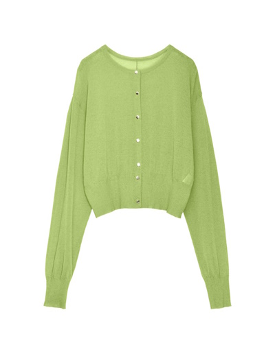 カーディガンはシアー感のある涼しい素材。日中に汗ばむ残暑の日も快適でいられます。