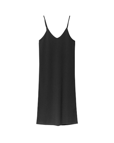 Iラインのシルエットでスッキリと着こなせるキャミワンピースです。