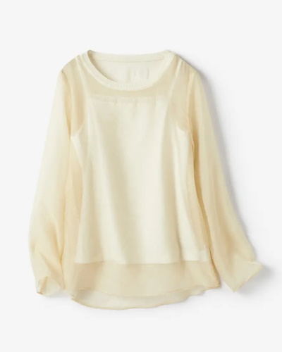 ハリのあるオーガンジー素材に対して、ニットは体になじませるようにして着られるのがメリット。