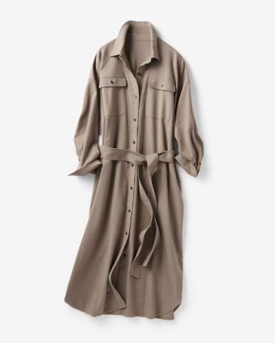 定番人気のシャツワンピース。付属のベルトでウエストを絞れば、これ1枚でXラインのシルエットが完成します。