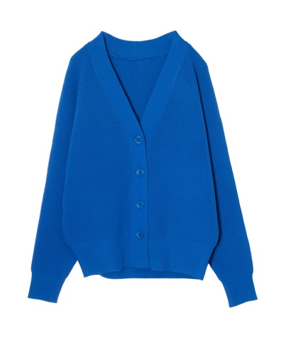 シルエットをキープしやすいのは、裾をリブに切り替えて絞ったタイプのカーディガンです。