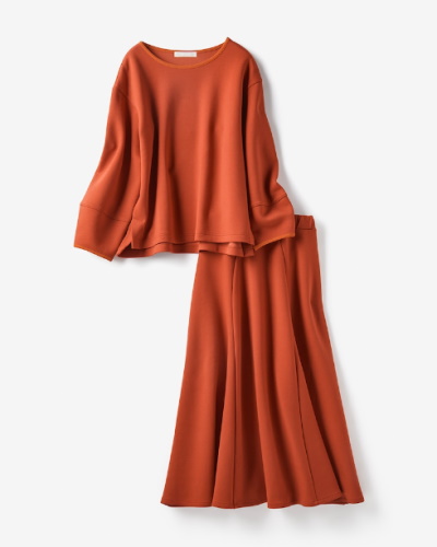 ゆったりとしたトップスとAラインスカートの組み合わせなら、ウエストインするだけで自然なXラインが作れます。