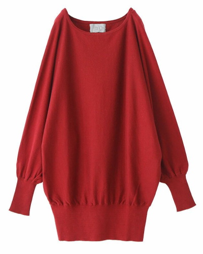 ドルマンスリーブのニットは二の腕や胴のラインを拾いにくく、上半身のカバーに向いているアイテム。