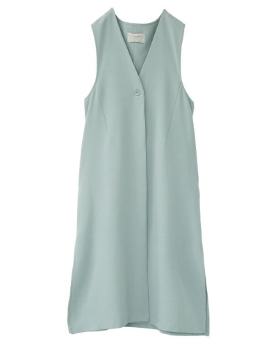 体型カバーとオシャレが両立したジレ。羽織るとコーディネートに縦のラインが入るので、全体を細長く見せることができるんです。