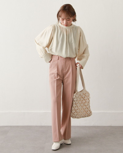 チルファーのラインナップには、ほのかに甘いペールカラーのボトムスや、ふんわりとした素材を使ったブラウスなどもあり、デートを意識した女性らしいスタイルにおすすめです。