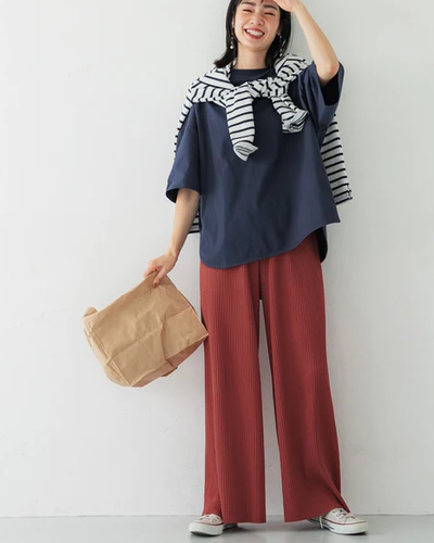それ故にしわになりやすい側面がありますが、ほんのりとナチュラルに着こなせる素材感でもあるので、多少のしわ感はコーデの一部として楽しみながら着用したいところです。