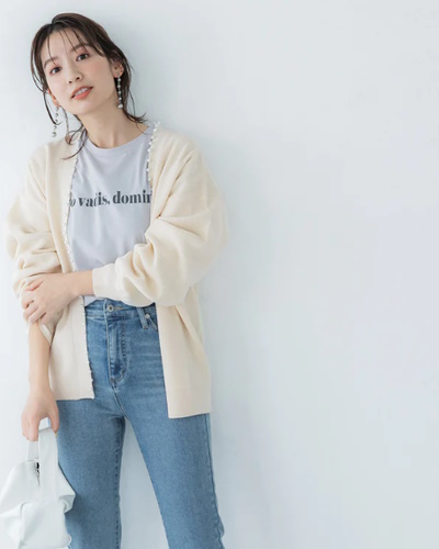 パンツ合わせでもスカート合わせでもすんなりと合わせやすく、ボリュームのあるボトムスにも自然に馴染む印象です。
