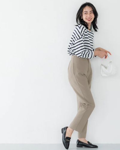 動きやすさと脚長効果を取り入れられるスタンダードな大人女性の着こなし方。