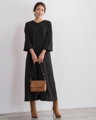 程よい厚みのワンピースは、真冬のデートやお出かけに重宝するアイテムです。