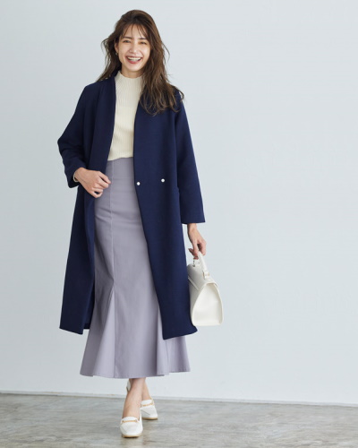 冬のファッションでは生地は厚くなり重ね着も増えますが、ルーズさを回避したいコンサバコーデでは、着ぶくれしないシルエットを選ぶことが大切です。