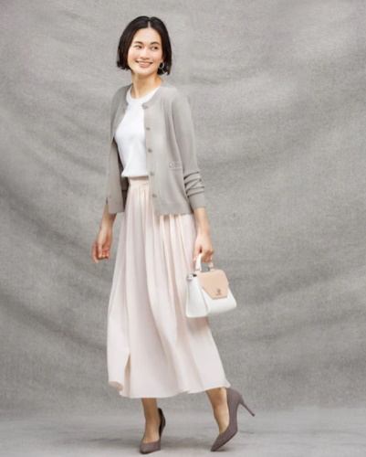 落ち着いた印象に仕上がるため、スカート派のオフィススタイルに最適なアイテムだといえるでしょう。