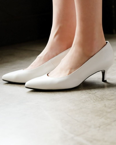 きちんとした印象になるよう、スムースレザーやスエードのパンプスを選ぶとよいでしょう。