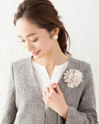 コサージュやブラウスのテイストを合わせると素敵です。