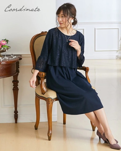 ネイビーに白のレースが映えて、お祝いのシーンに清楚な印象を残すでしょう。