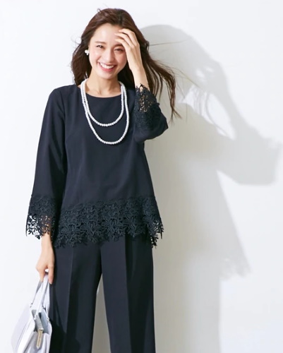 女性のパンツスタイルは準礼服やセミフォーマルと呼ばれ、フォーマルシーンの分類では中程度に分けられます。