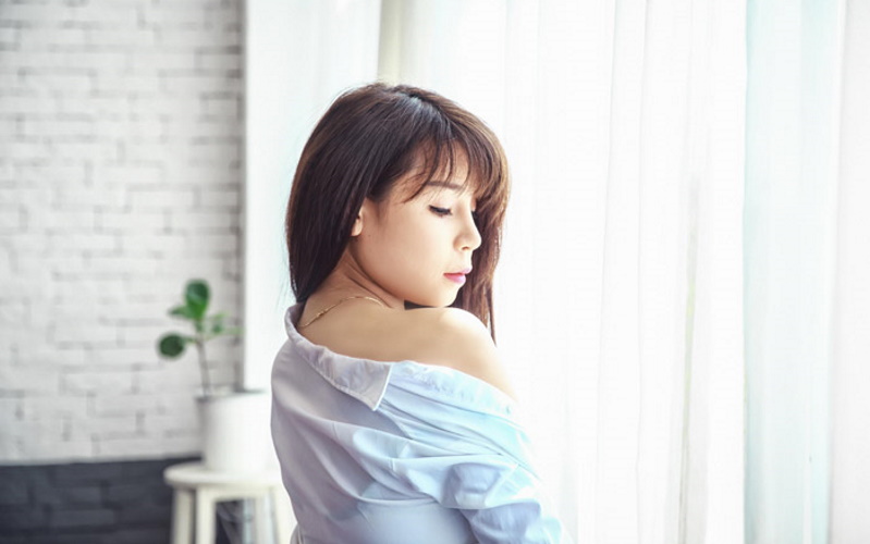 肩が華奢な人には、どちらかというとフェミニンな服装が似合います。