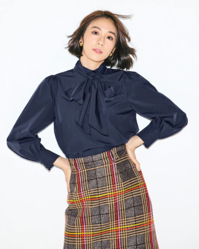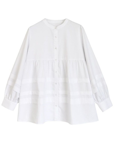 肩幅がジャストサイズのバンドカラーブラウスは、一枚でコーディネートする他、ベストを合わせたレイヤードスタイルにもぴったり。