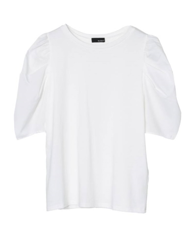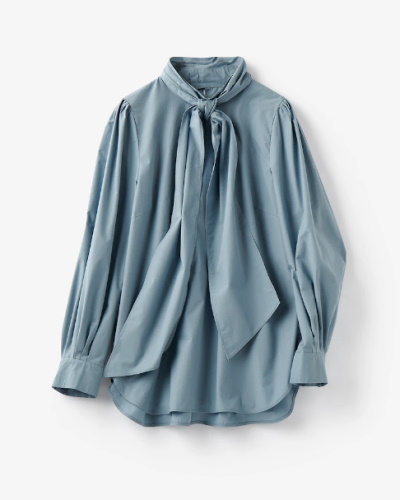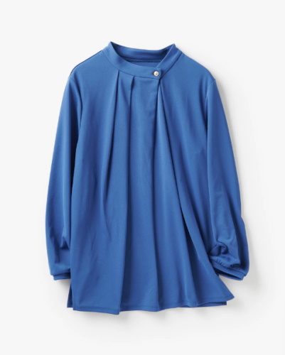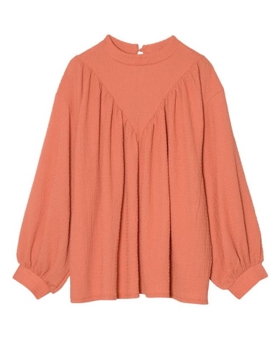 こちらのトップスは肩にディティールを加えず、襟元からタックでボリュームをつけたデザイン。