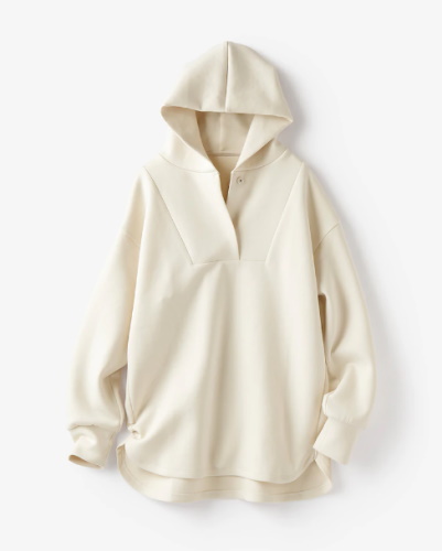 ほのかな光沢感で肌をきれいに見せてくれる、大人女性のためのフーディー。