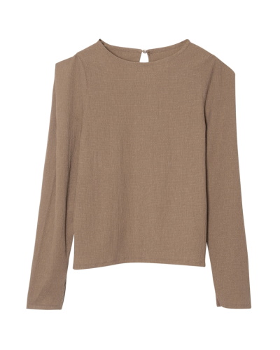 こちらのブラウスは生地にハリがある分、肩の膨らみが立体的に仕上がり、下がったなで肩をカバーしやすいでしょう。