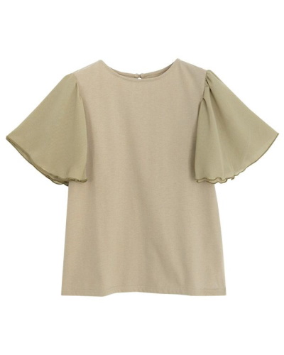 通常の袖にフレアを足したデザインのトップスも、肩幅を強調させたい方におすすめのデザインです。