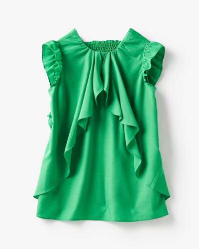 ボリューミーなフレアスリーブに対し、可愛らしく肩口を飾るのがフリルスリーブです。