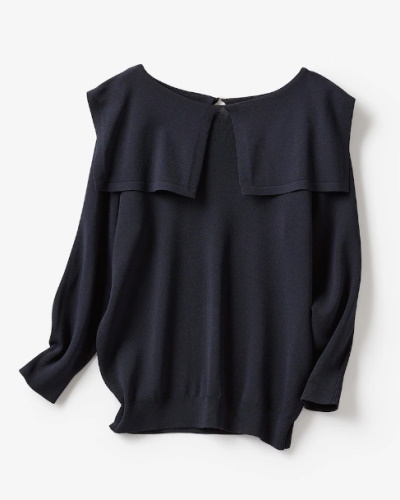 襟が横に広がるビッグカラーも、なで肩さんの体型カバーに効果のあるデザインです。
