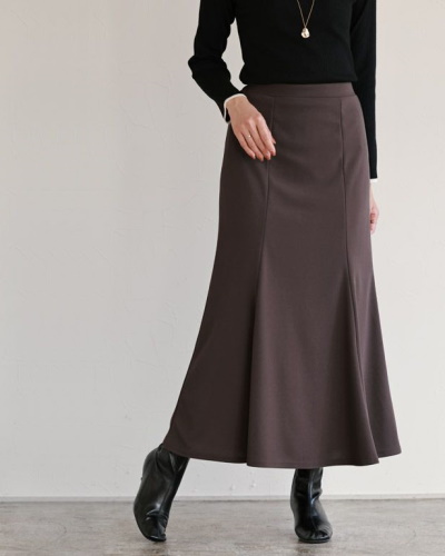 タイトスカートの上品さとフレアスカートの柔らかさをあわせ持ち、しなやかで女性らしい印象を与えます。