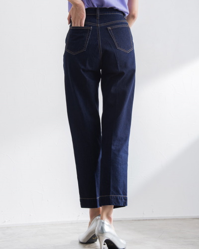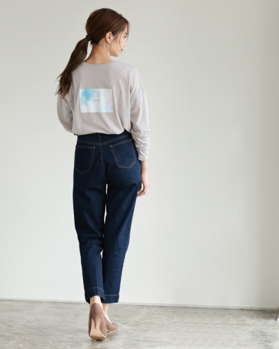 適度なゆとりのあるストレートデニムパンツは、お尻の大きさが目立ちにくいアイテムです。