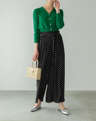 シンプルなワイドパンツなら使えるシーンも多く、上品にまとめたい通勤にもぴったり。