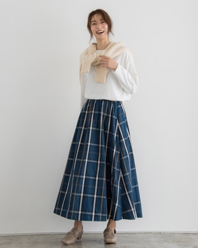 ハッキリとした配色のチェック柄を選べば、柄そのものが与えるインパクトが強いため、お尻だけに視線が集まるという心配もありません。