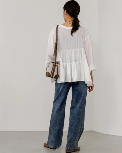 切り替え部分のデザインにはいくつかの種類がありますが、フェミニンな雰囲気に仕上げたい場合は、ギャザーを段々に積んだティアードもおすすめです。