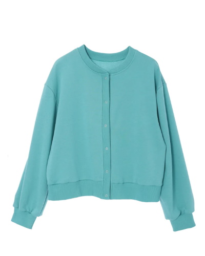 こちらのカーディガンは、ブルゾン型のデザインやリングタイプのスナップボタンなど、トレンドの要素が詰まった一枚。