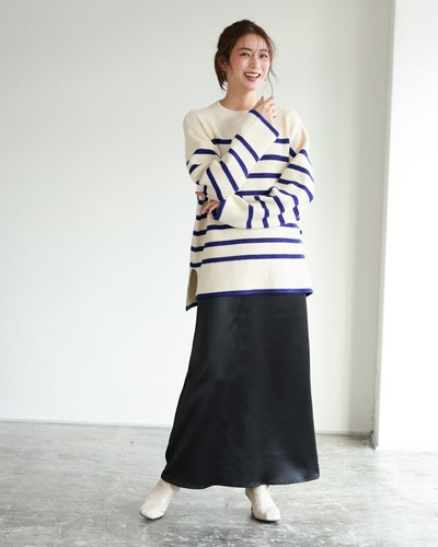 これからの時期にも合わせやすいのが、爽やかな印象のボーダー柄ニット。